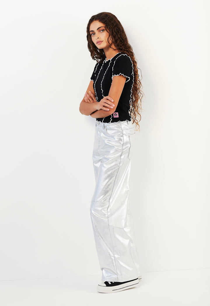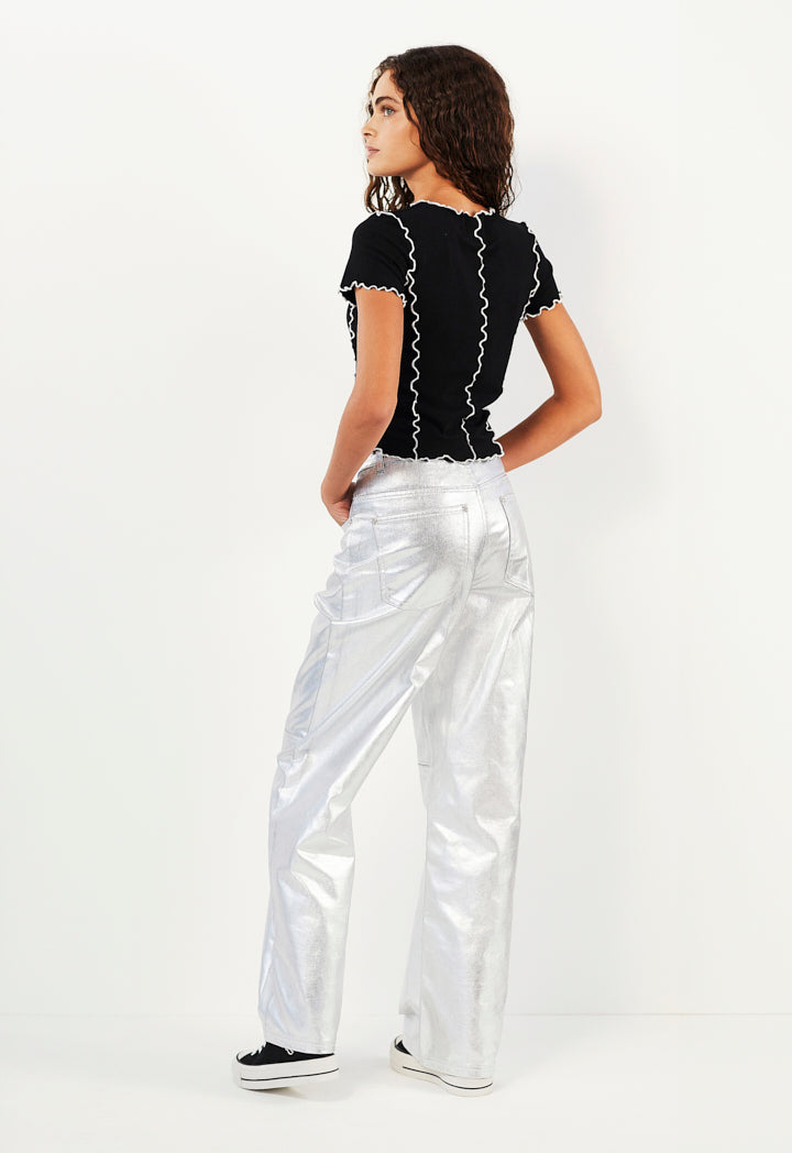 A Unique Two Toned T Shirt That Features A Trimmed Design And Short Sleeves.