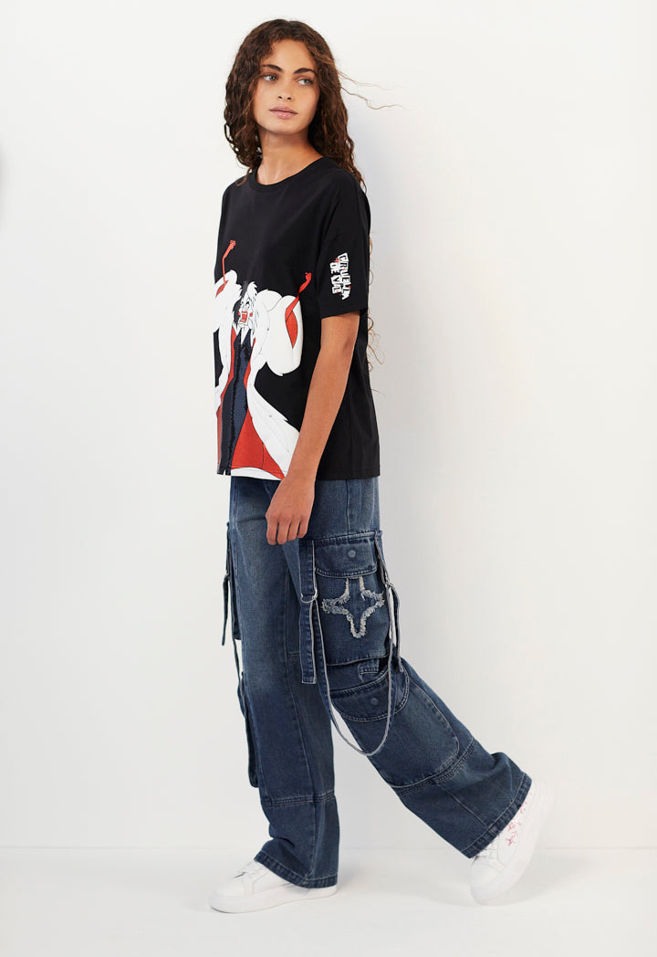 A Knitted T Shirt That Features An Alluring Disney Cruella Design And Short Sleeves .