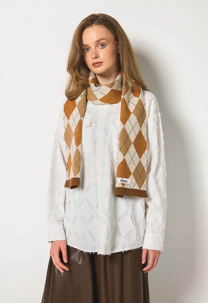 Add Versatility To Your Winter Looks With This Knitted Argyle Scarf.