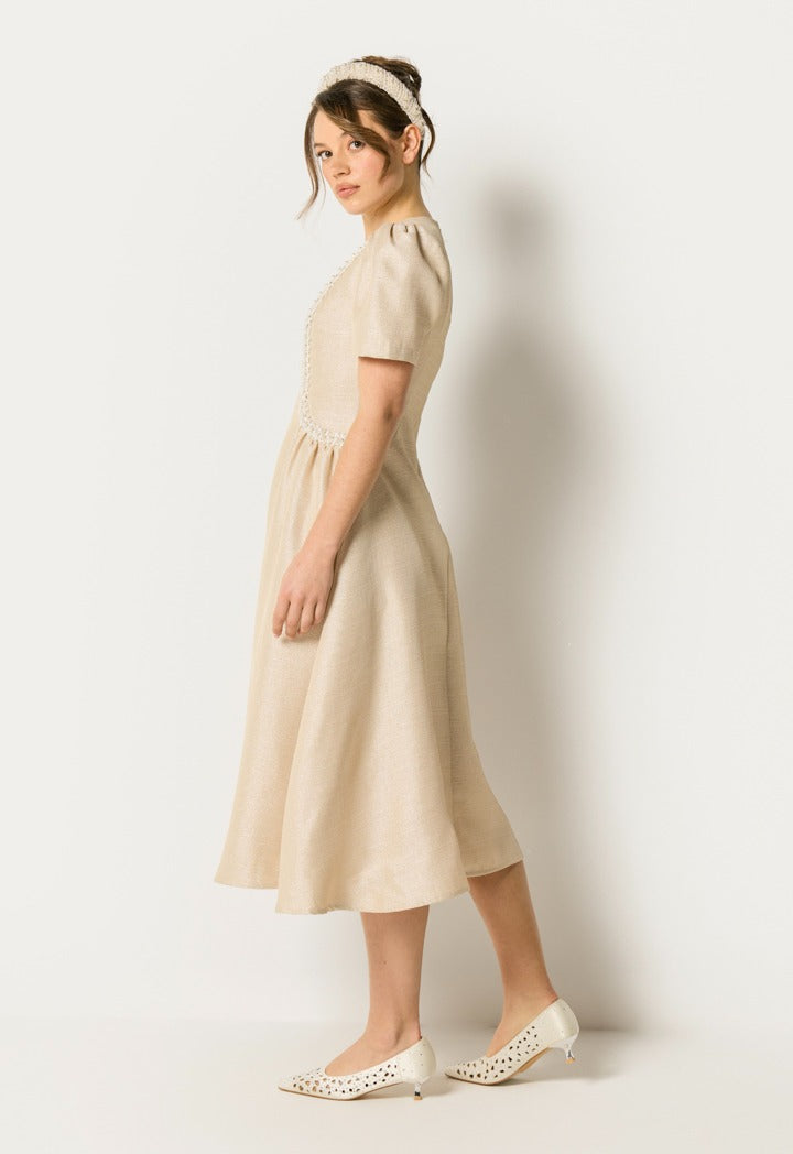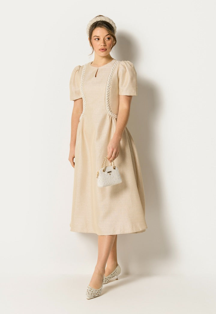 Faux Pearls Embellished Lurex Dress Champagne