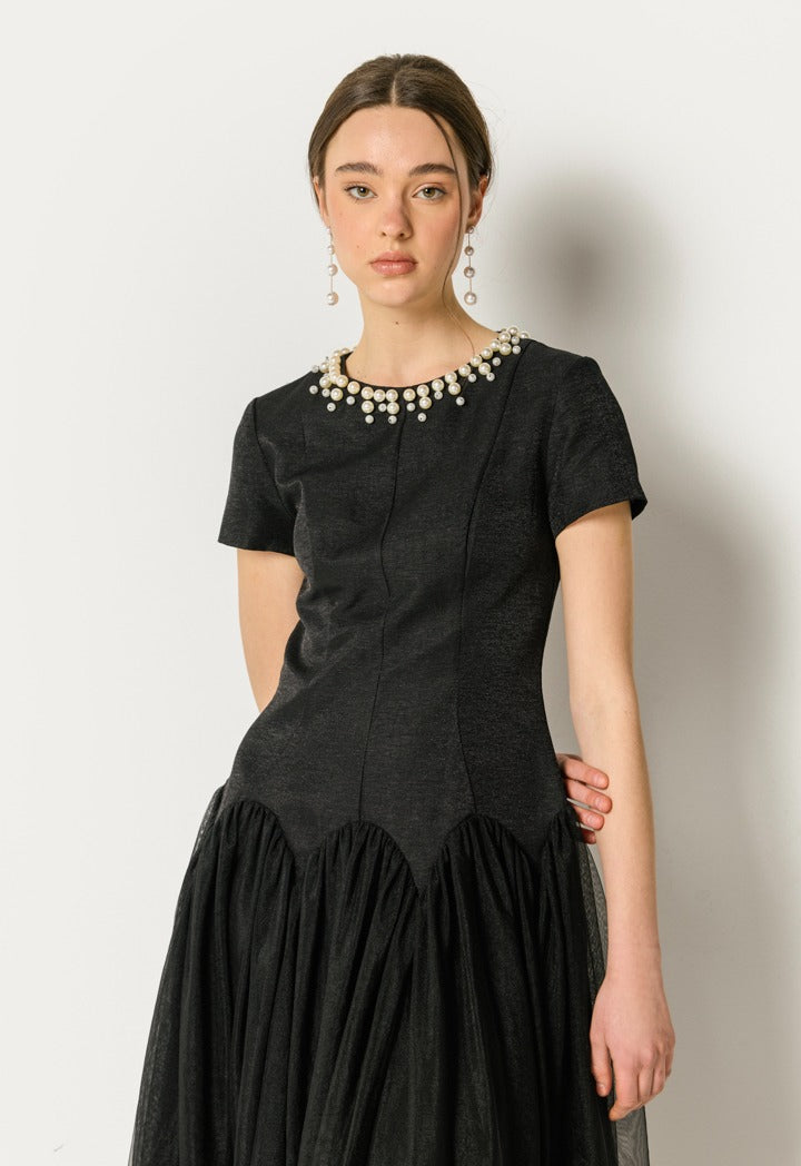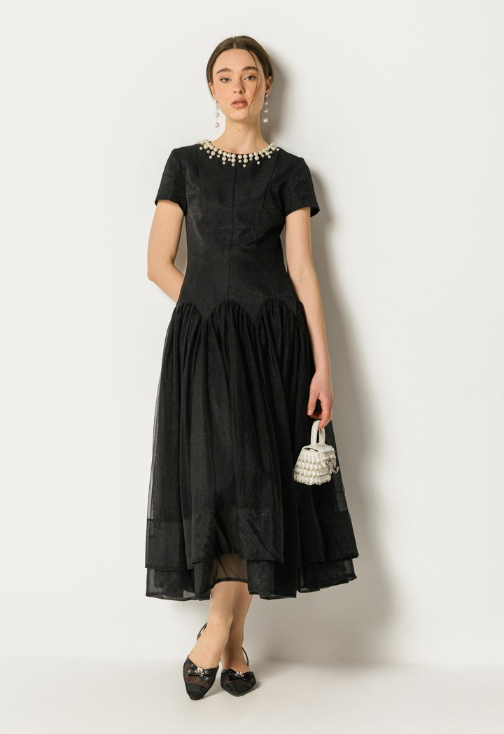 Design : Solid, Inner Lining, Faux Pearls Embellished, Layered Organza, Lurex, Gathered Fabric
