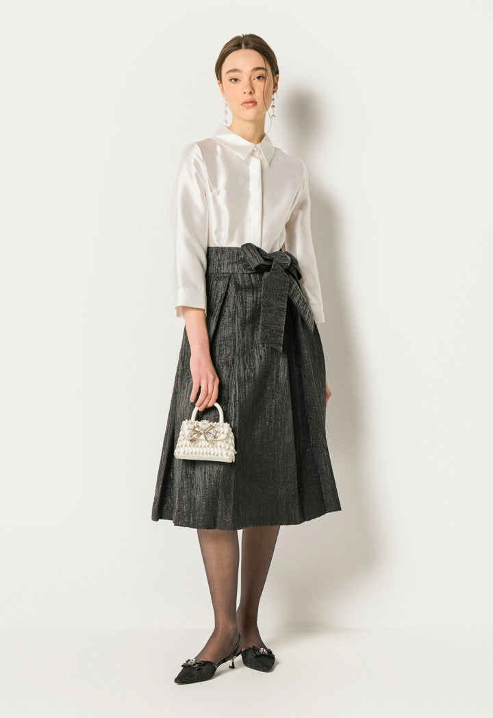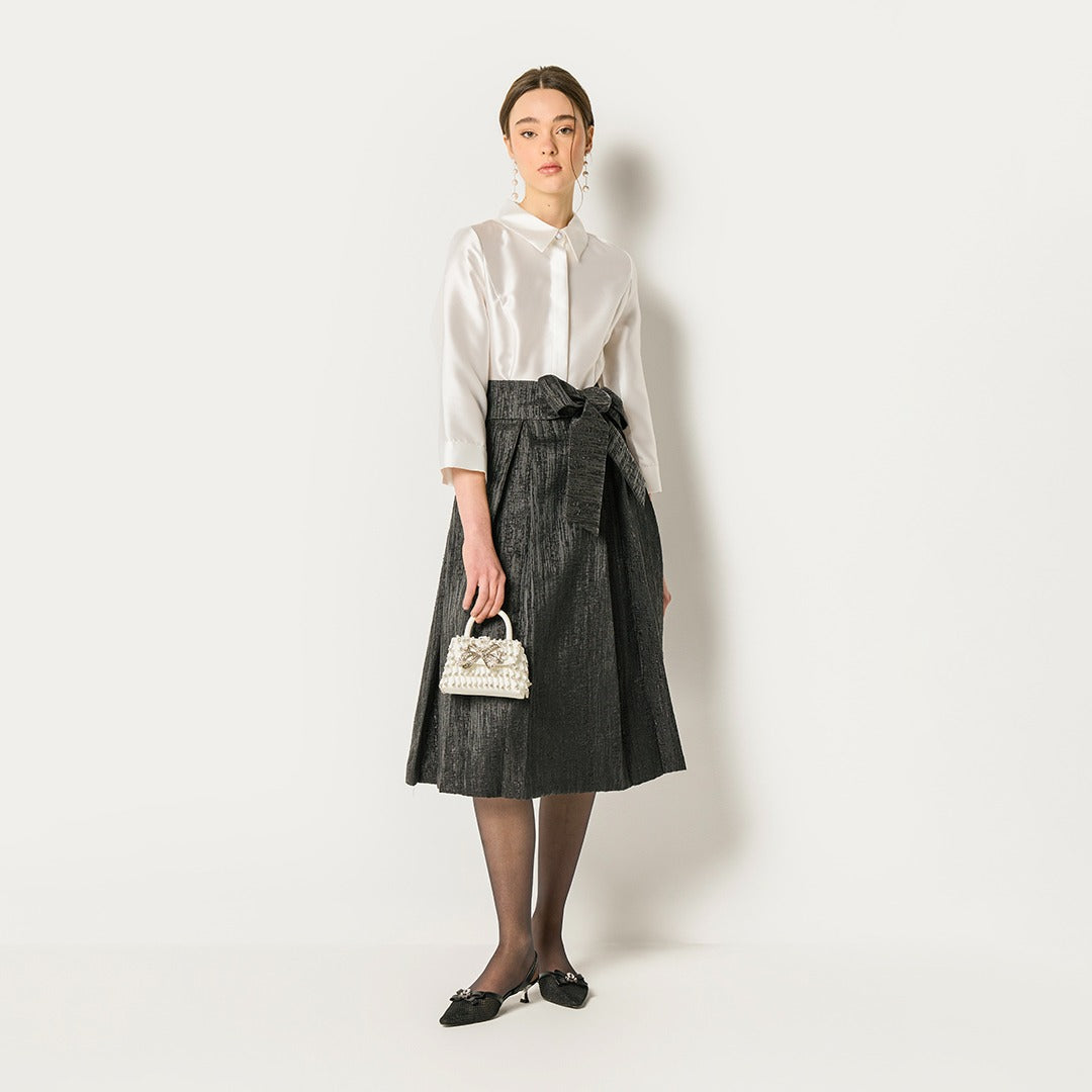A Crisp Shirt- Style Top Meets A Skirt With A Statement Bow Waist For A Polished, Grown Up Look She Can Wear To Any Special Occasion.