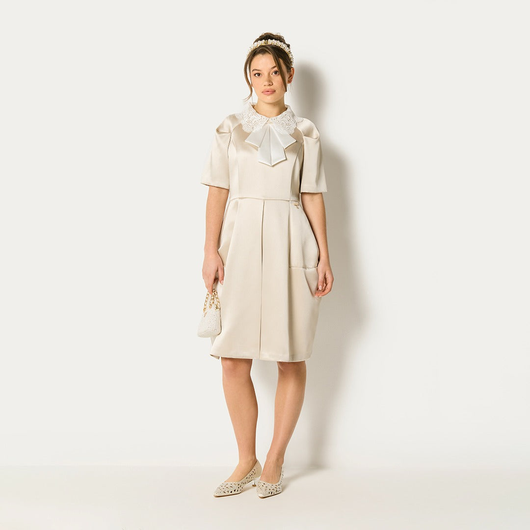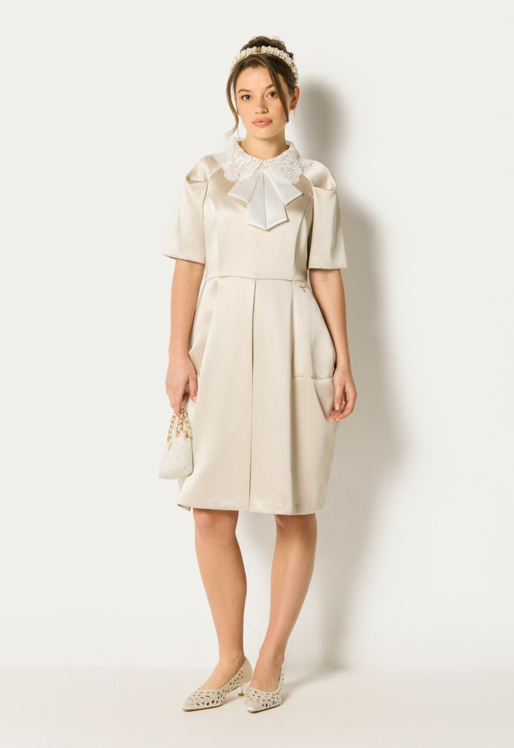 Lace Collar Bow Front Dress Champagne