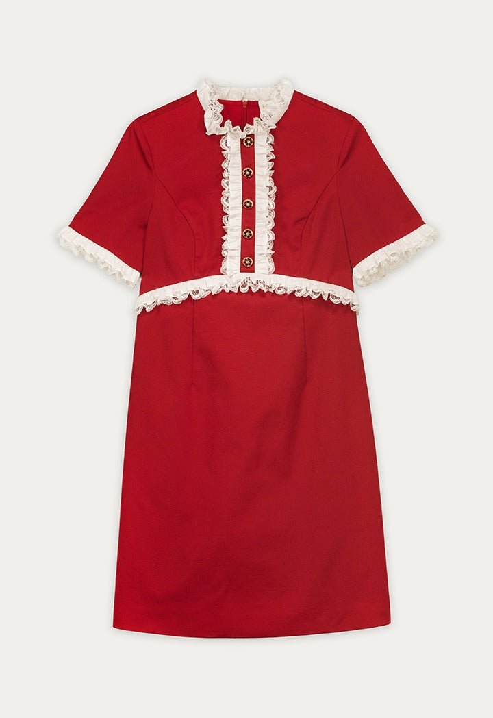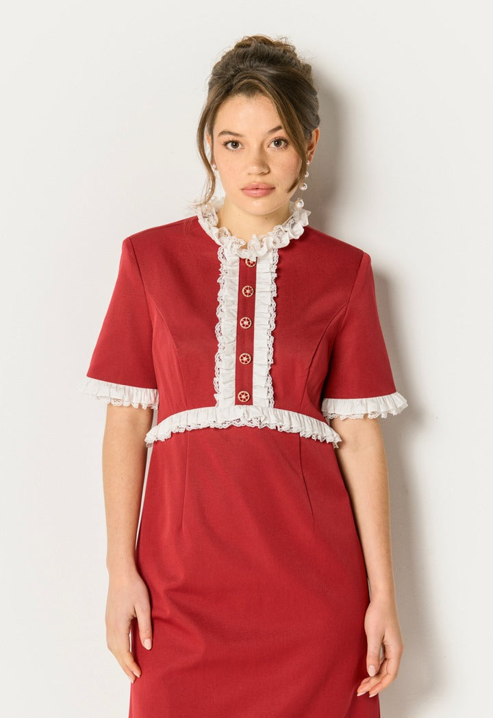 A Sweet Dress With Lace Ruffles And Shiny Gold Buttons, Made To Give Her A Charming,