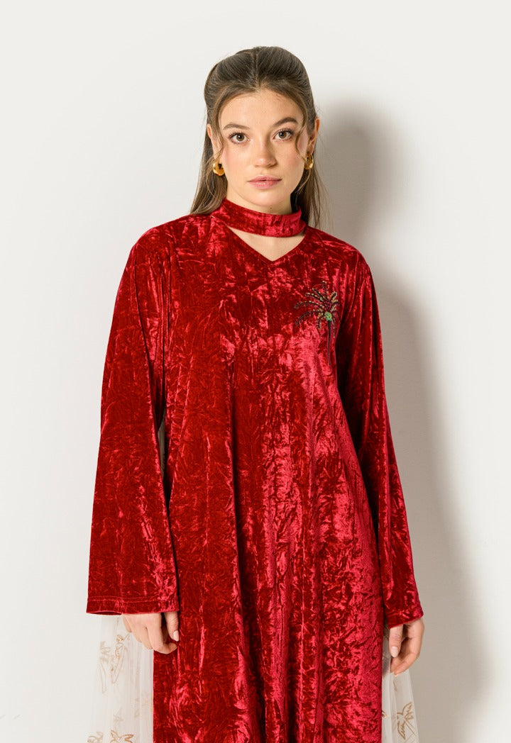A Rich Crinkled Velvet Kaftan With A Sparkling Palm Motif That Gives Your Ramadan Evenings A Bold, Jewel Tone Glow While Staying Soft And Easy To Wear.