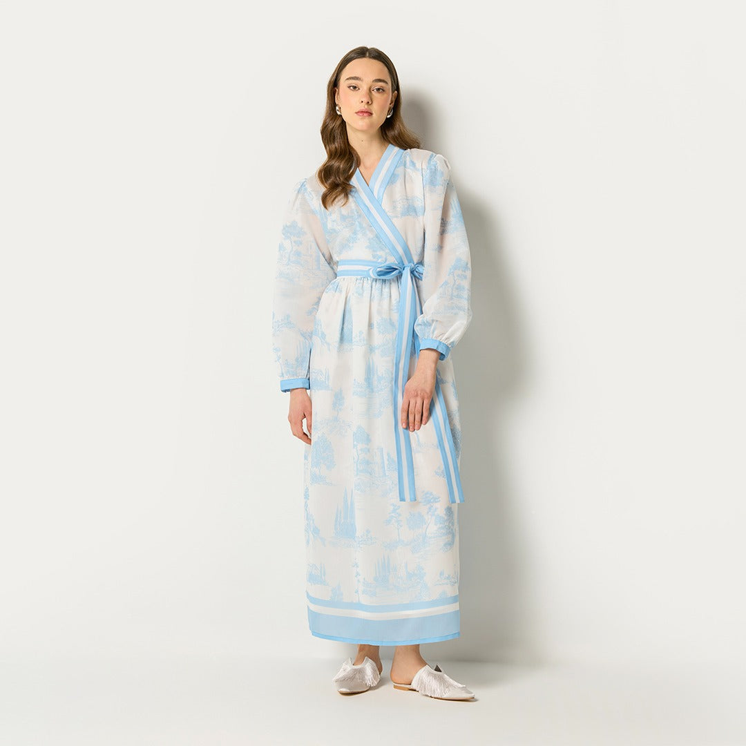 Contrast Printed Wrap Dress Blue