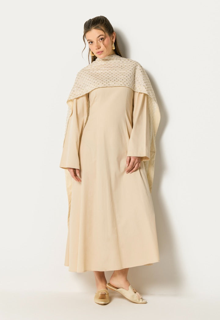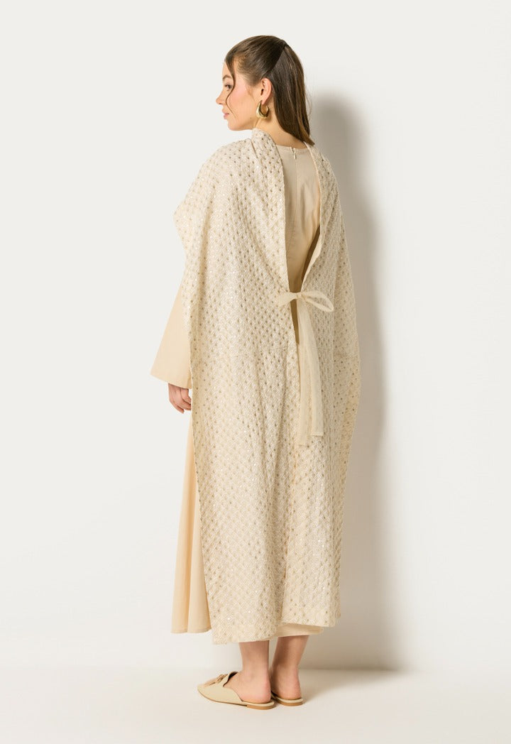 Dress With Sequin Embroidered Shawl(2Pcs) Beige