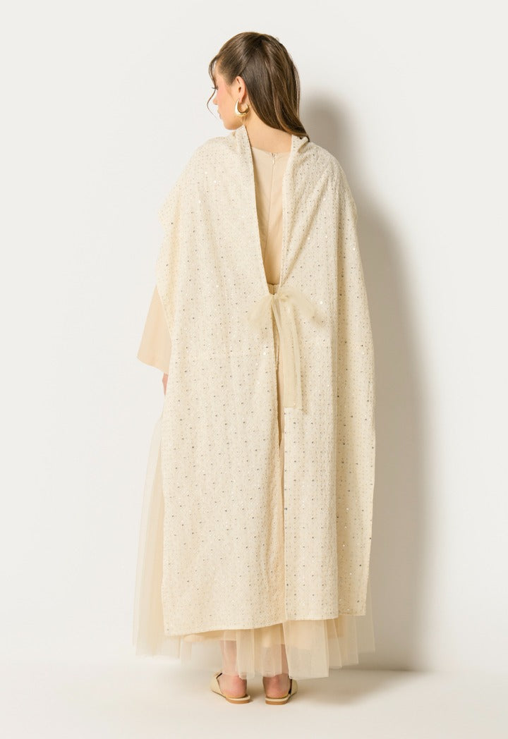 Sequin Embroidered Kaftan Dress (3Pcs) Beige