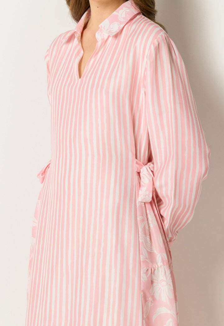 A Loose Dress With Floral And Stripe Prints That Moves Beautifully, Making It Your Go To Choice For A Comfy Yet Eye Catching Look In Ramadan And Beyond.