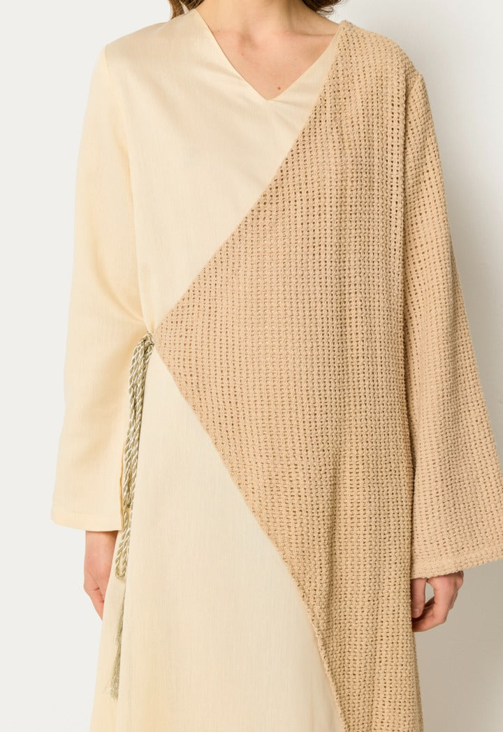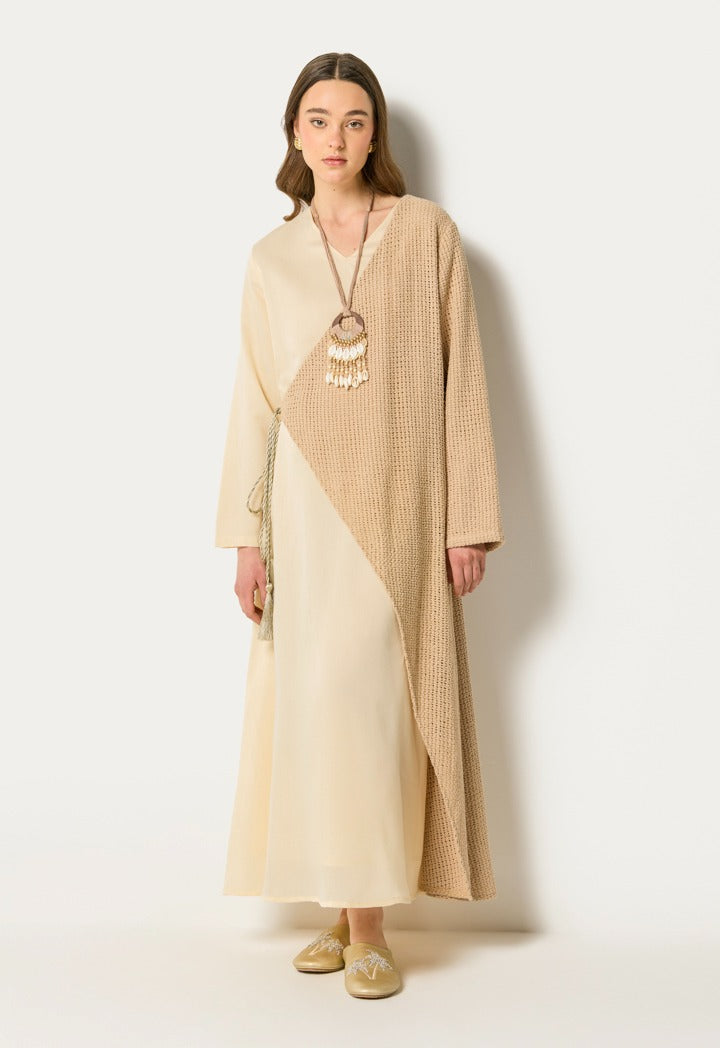 Knitted Overlay Dress Beige