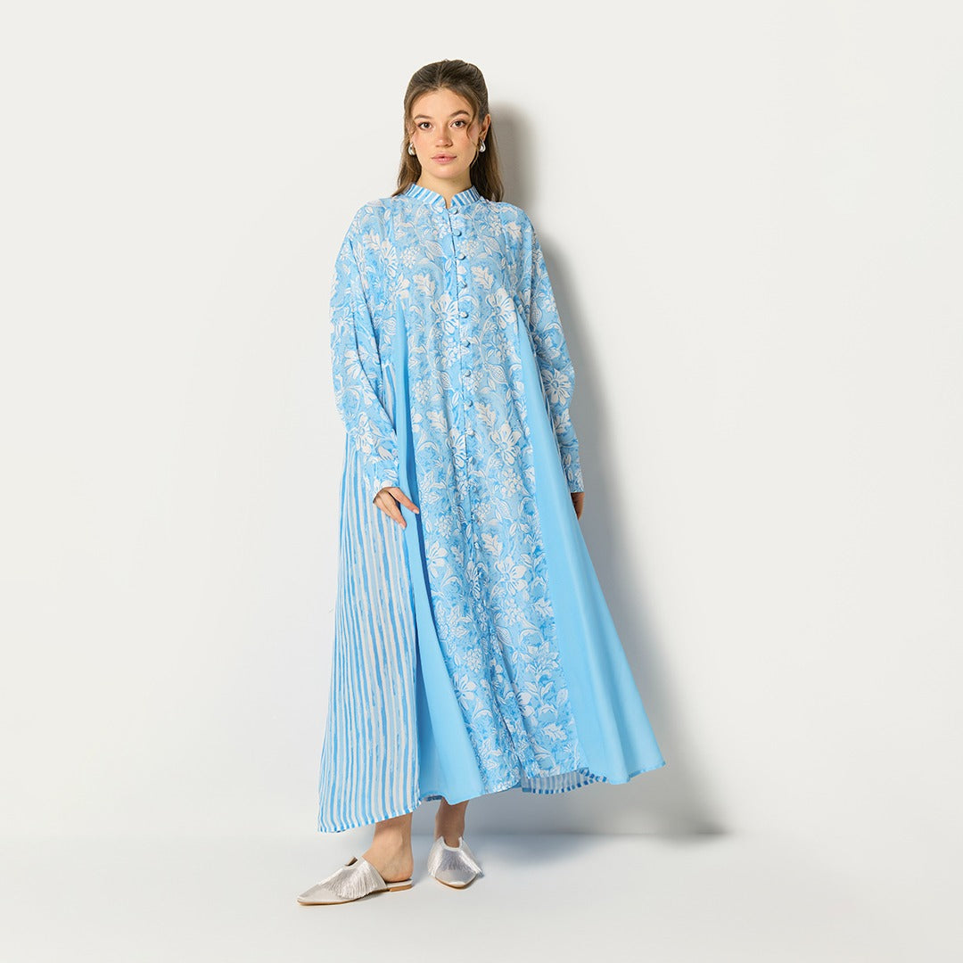 A Loose Dress With Floral And Stripe Prints That Moves Beautifully, Making It Your Go To Choice For A Comfy Yet Eye Catching Look In Ramadan And Beyond.
