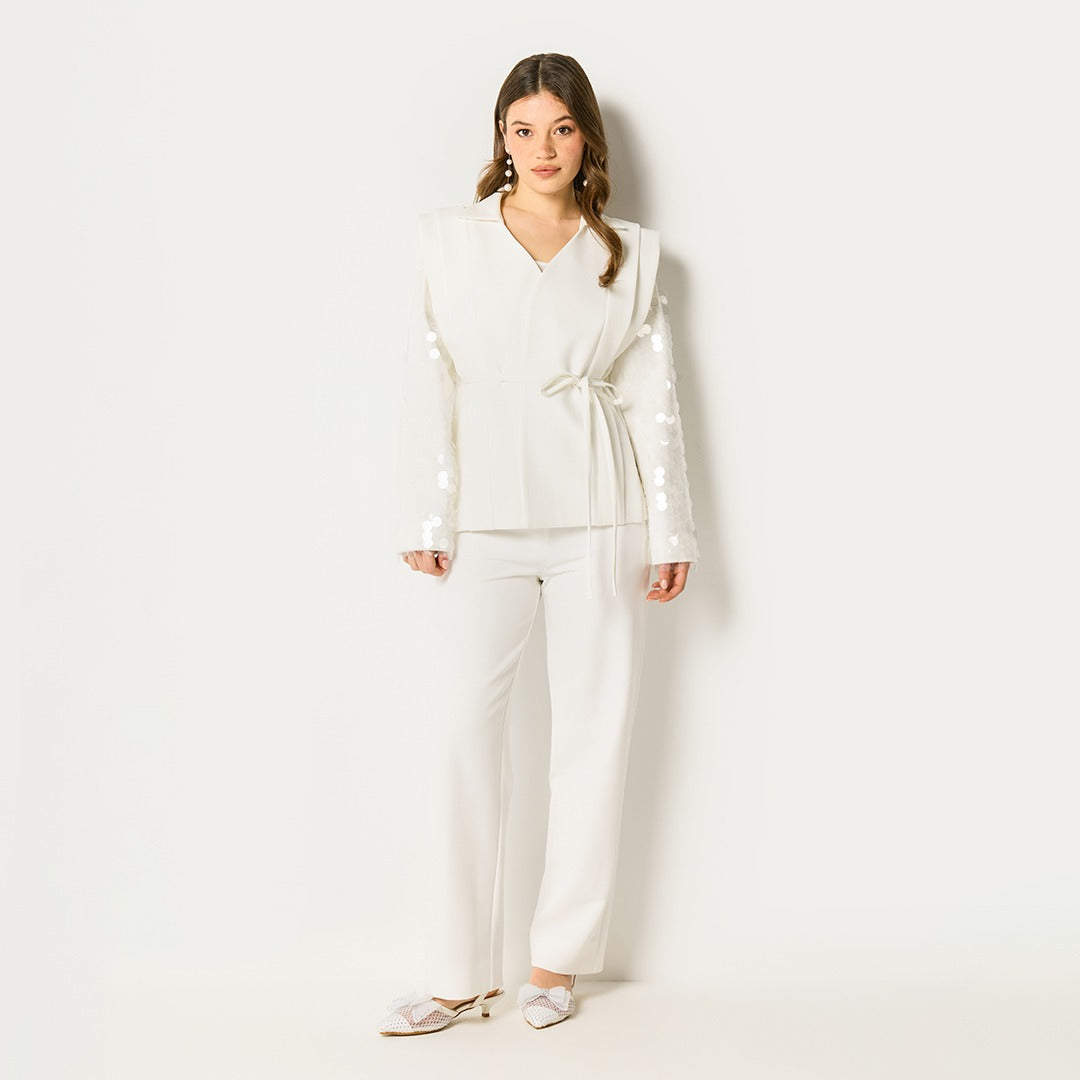 Shimmering Sleeve Tailored Set (2Pcs) Off White