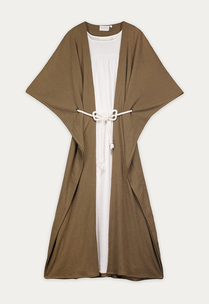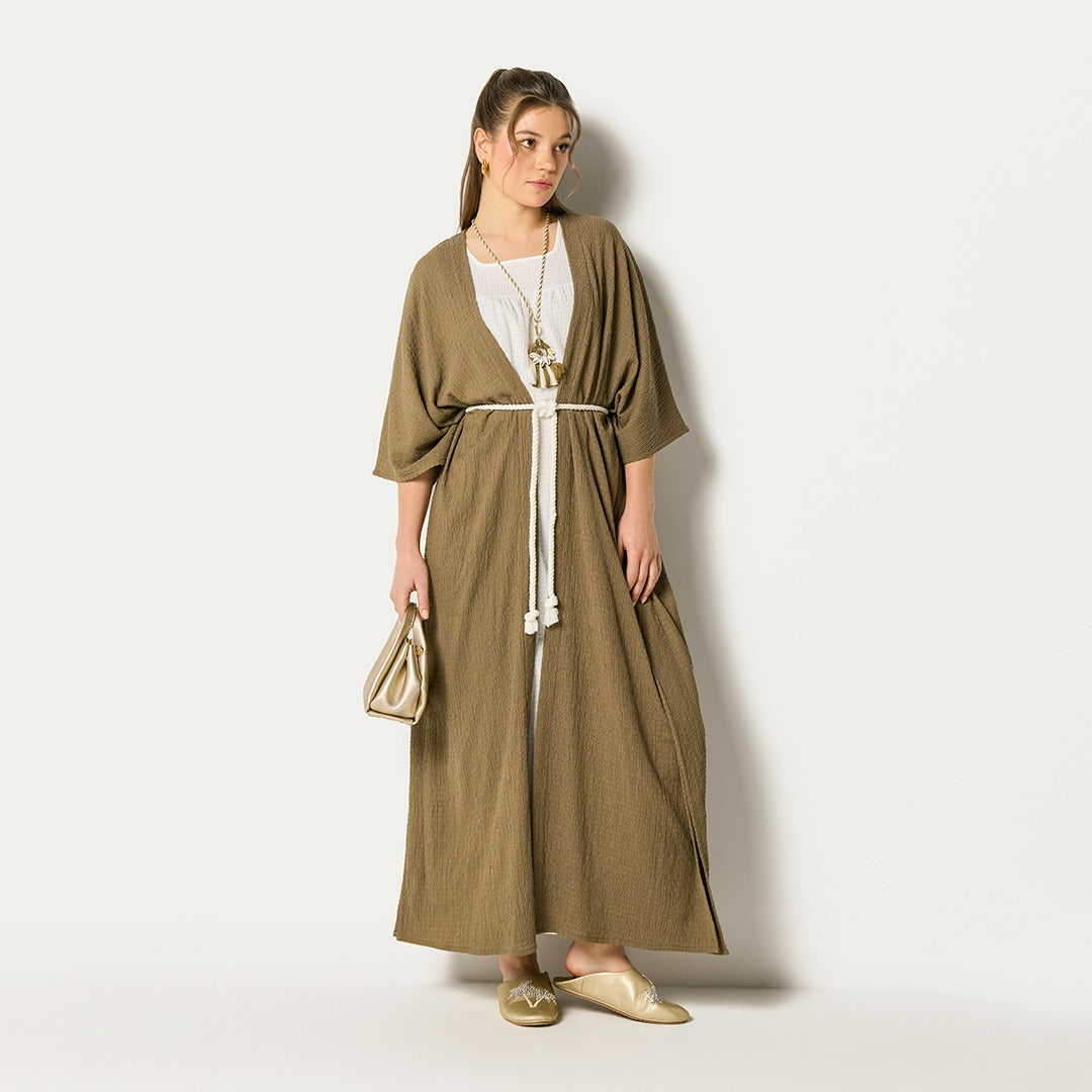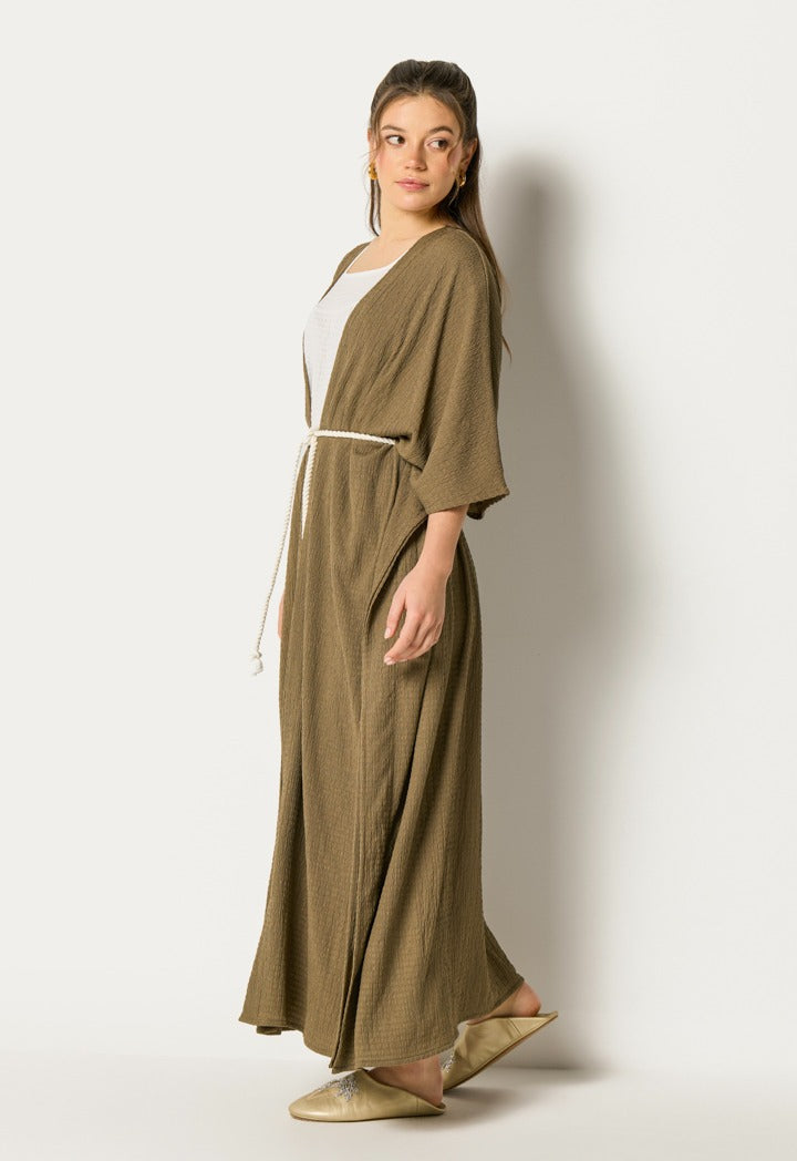 Two Tone Abaya And Sleeveless Dress Set (2Pcs) Olive