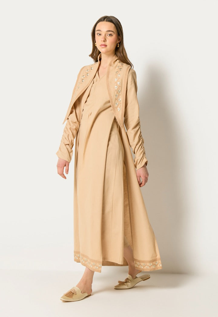 Embroidered Abaya And Jumpsuit Set ( 2Pcs) Beige