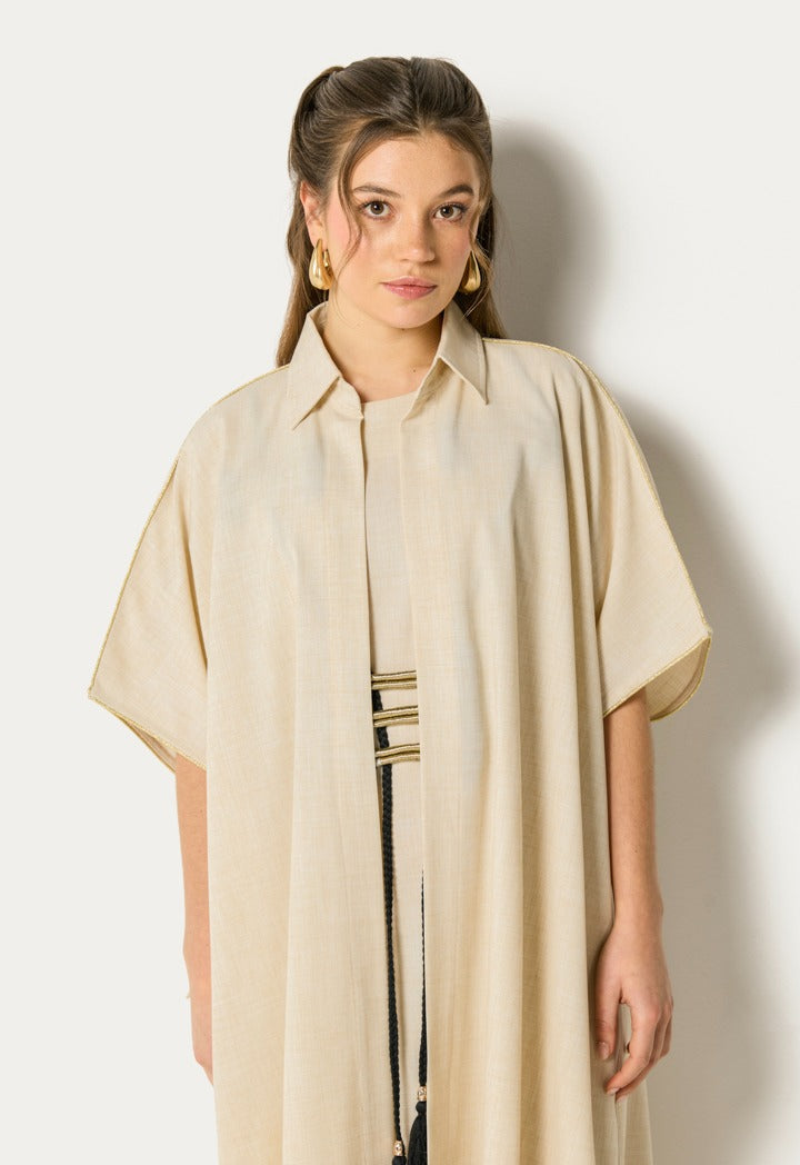 Lurex Tassel Dress And Cape Set (2Pcs) Beige