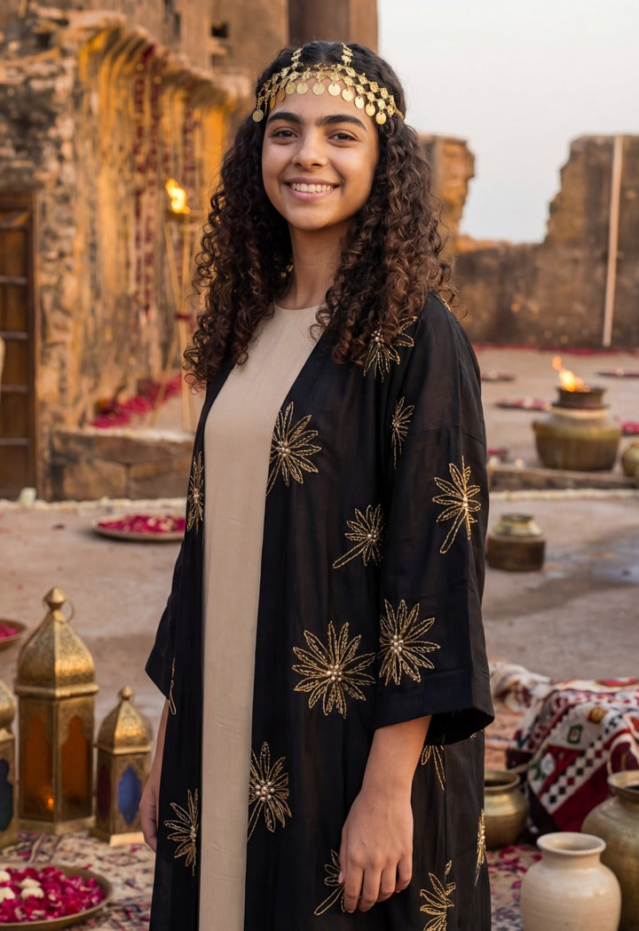 Sparkle Your Ramadan Style With This Palm Lurex Abaya, Perfect For Festival Look.