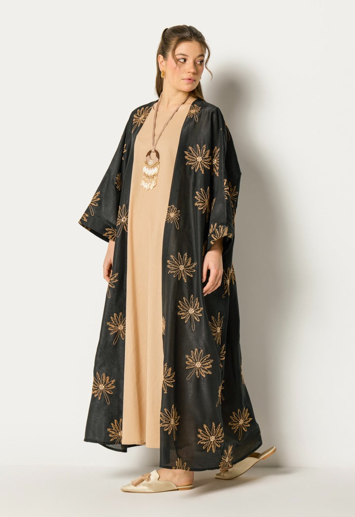 Two Tone Embroidered Abaya Set (2Pcs) Black
