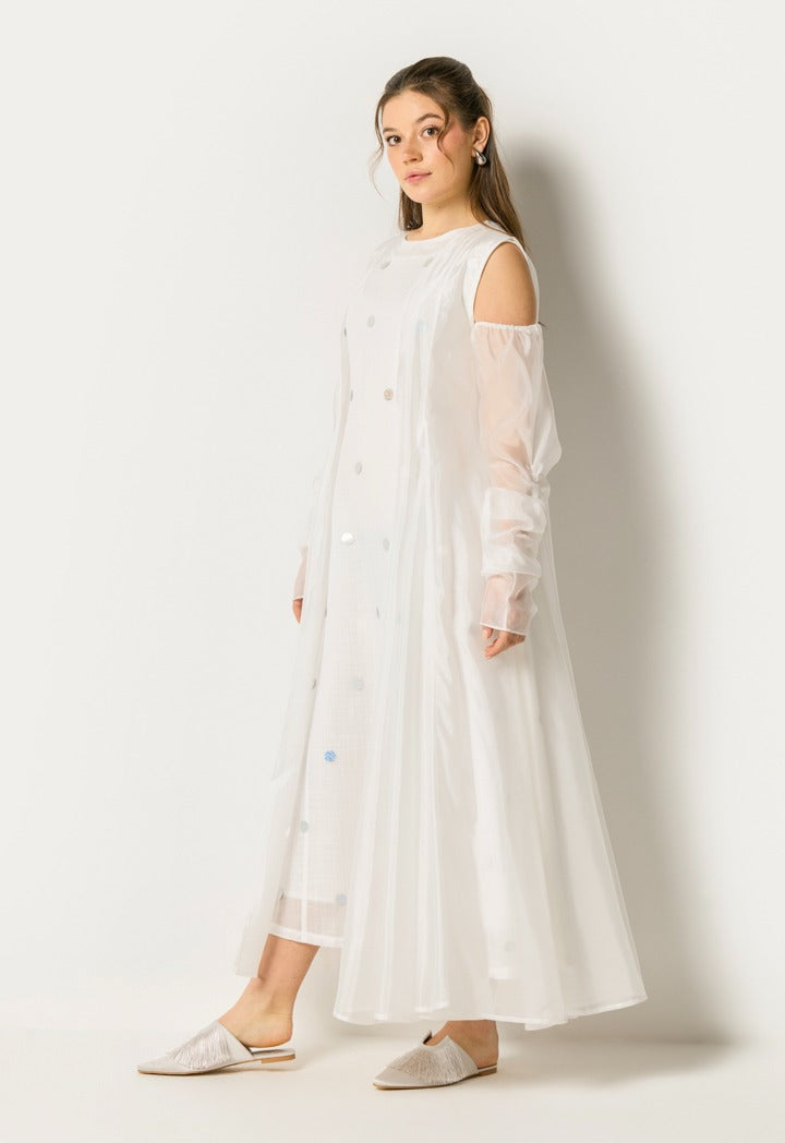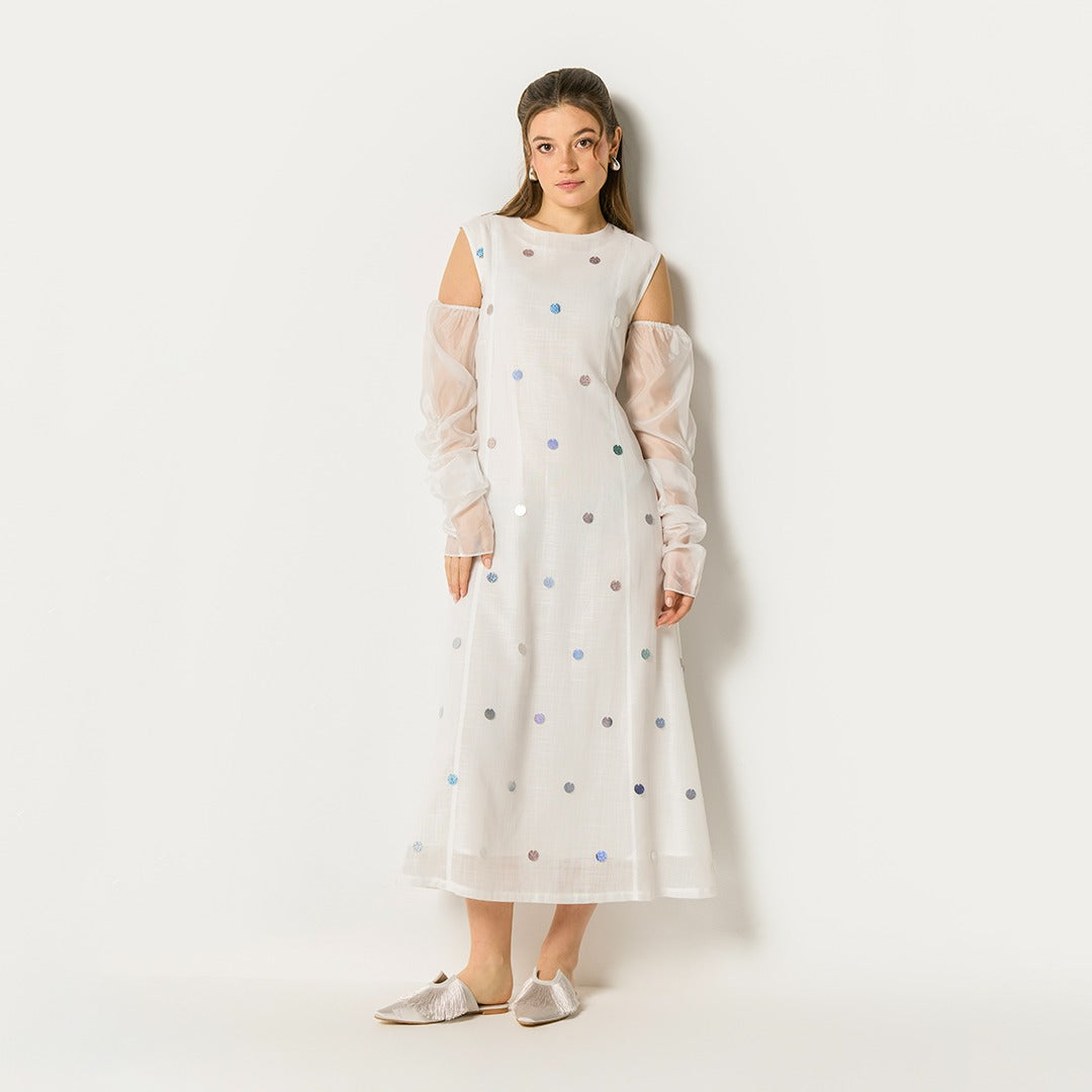 Sequin Dot Embellished Dress Set (2Pcs) Off White