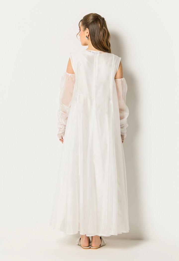 Sleeve Length : Shoulder Cut Out Organza Sleeves