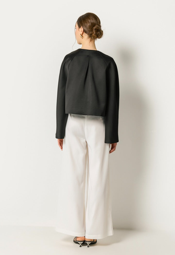 This Cropped, Bow-Embellished Jacket Is Unique With Its Long Slit Sleeves And Can Be Styled With Black Or White Formal Trousers.