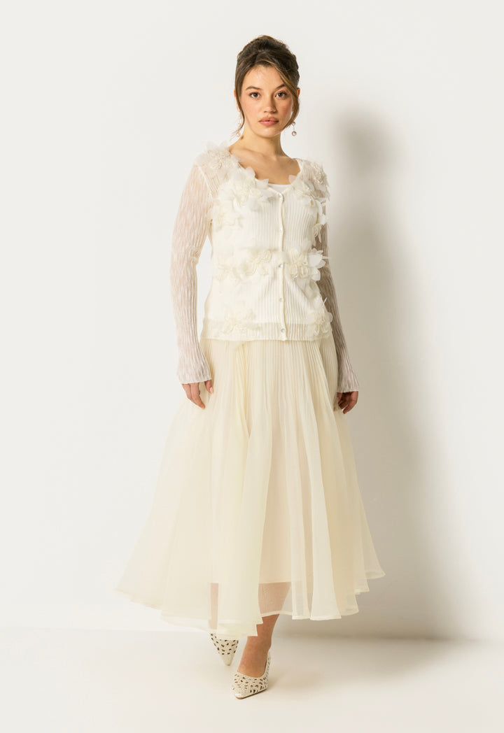 Design : Knitted, Beaded, 3D Flowers, Embellished, Organza, Sheer, Singlet
