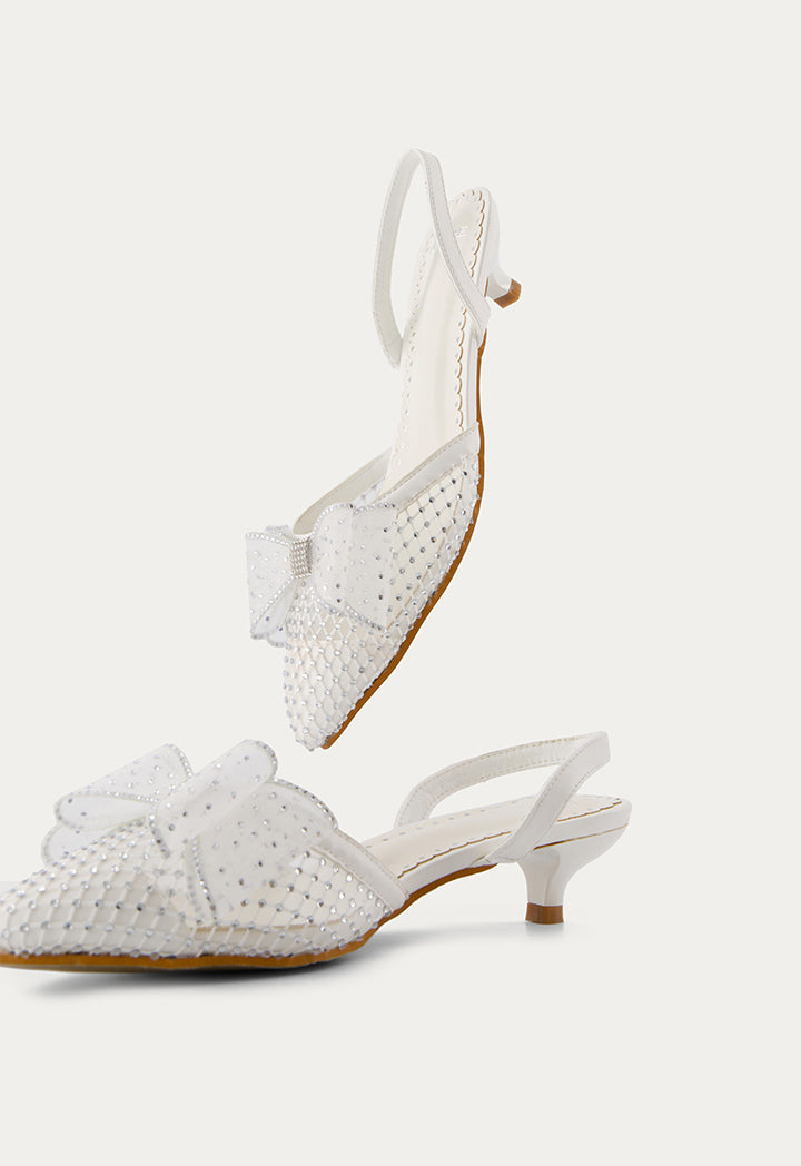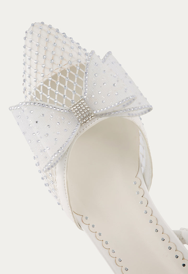 Design : Crystal Embellished, Pointed Toe, Mesh, Bow