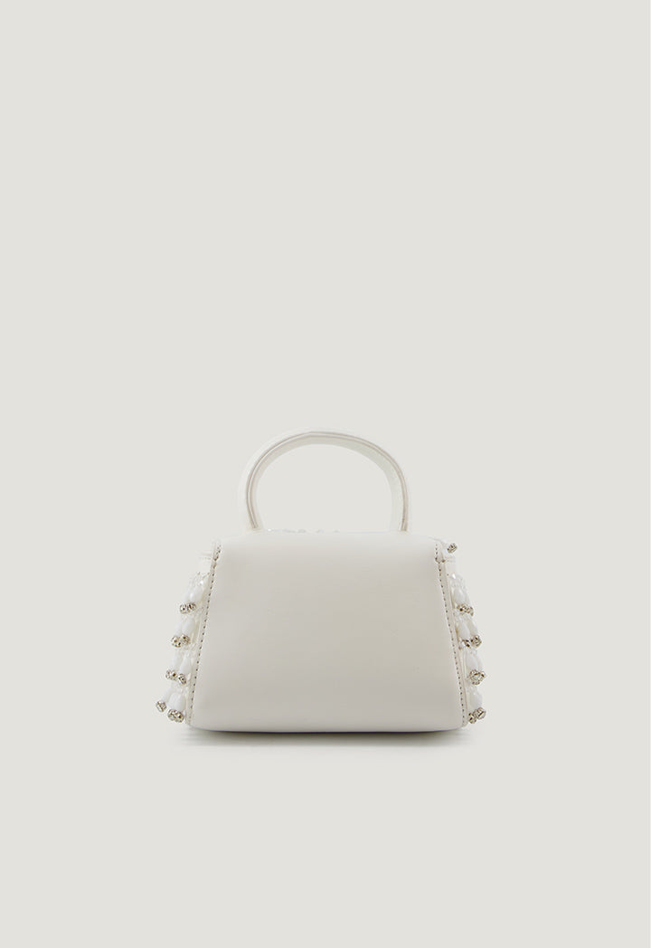Crystal Embellished Bow Mini Bag White