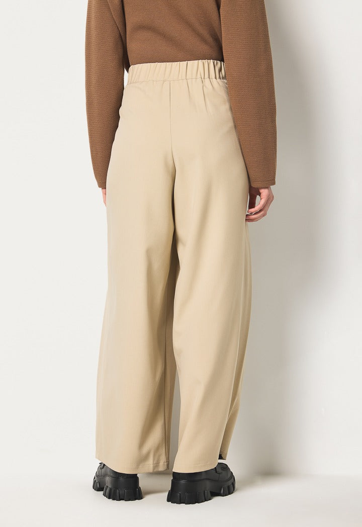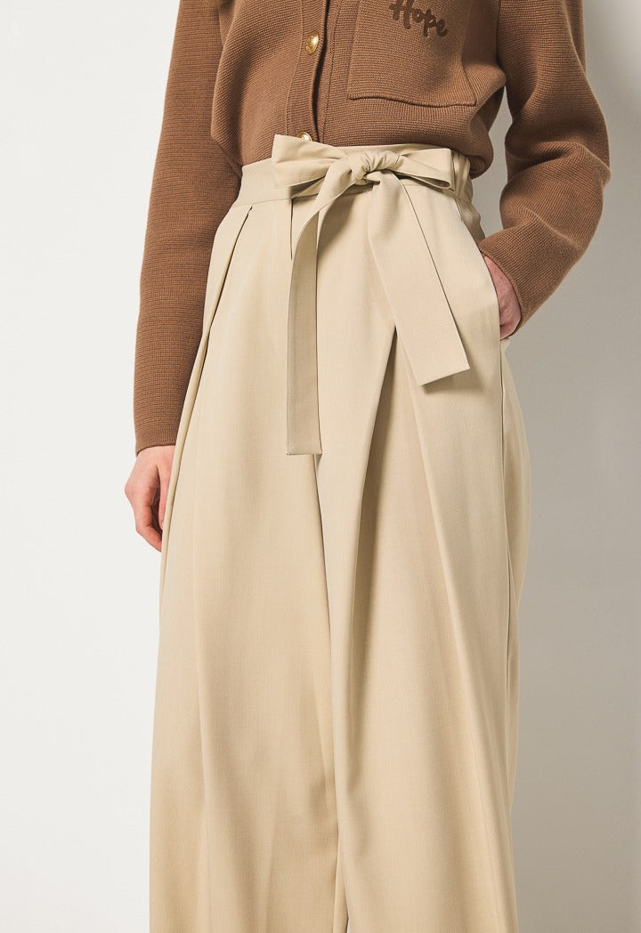 A Pair Of Modern Trousers That Feature A Wide Leg And A Belted Waist.