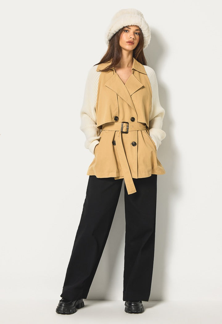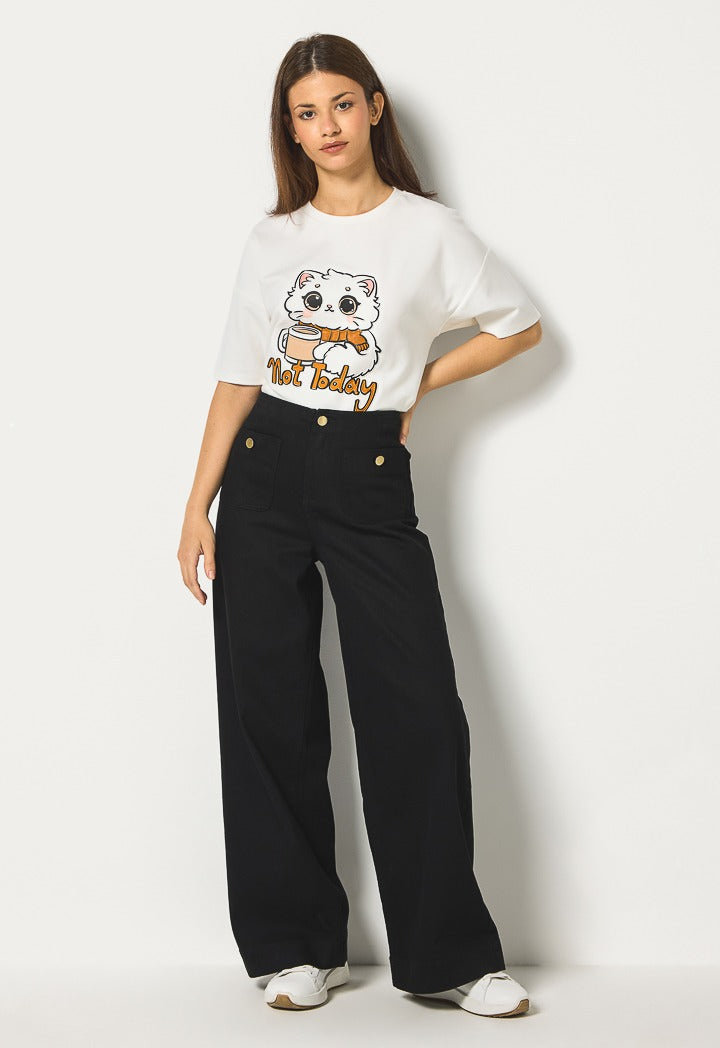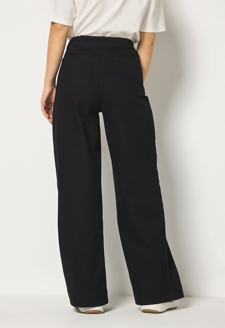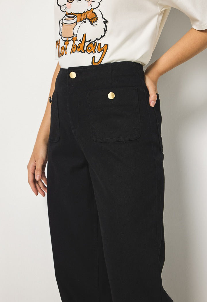 A Pair Of Modern Trousers That Feature A Buttoned High Waist.
