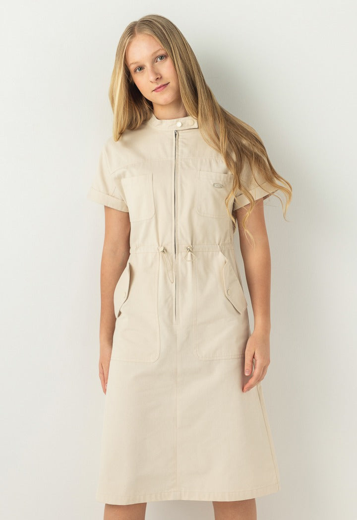 A Unique Dress Design That Includes A Cargo Design With A Drawstrings Waist.