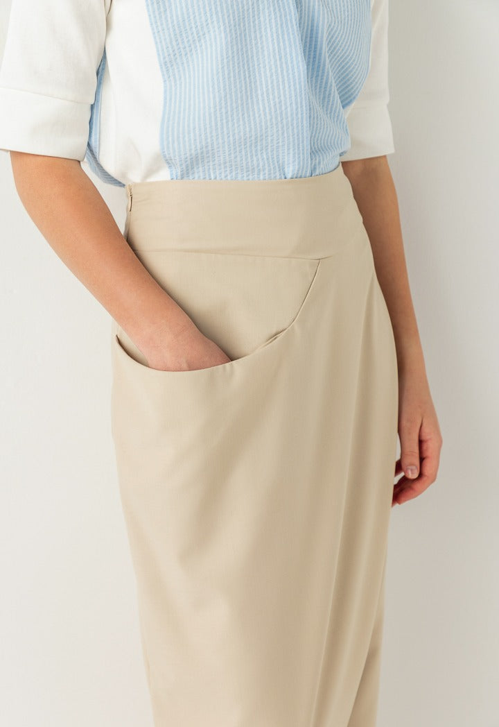 Hope Overlay Elastic Waist Pants Beige